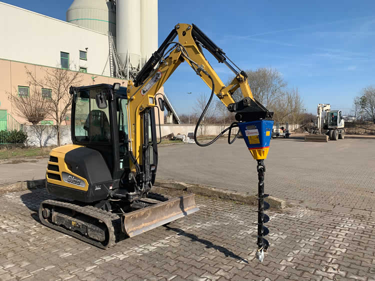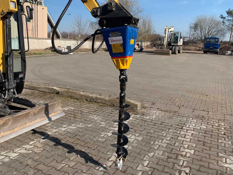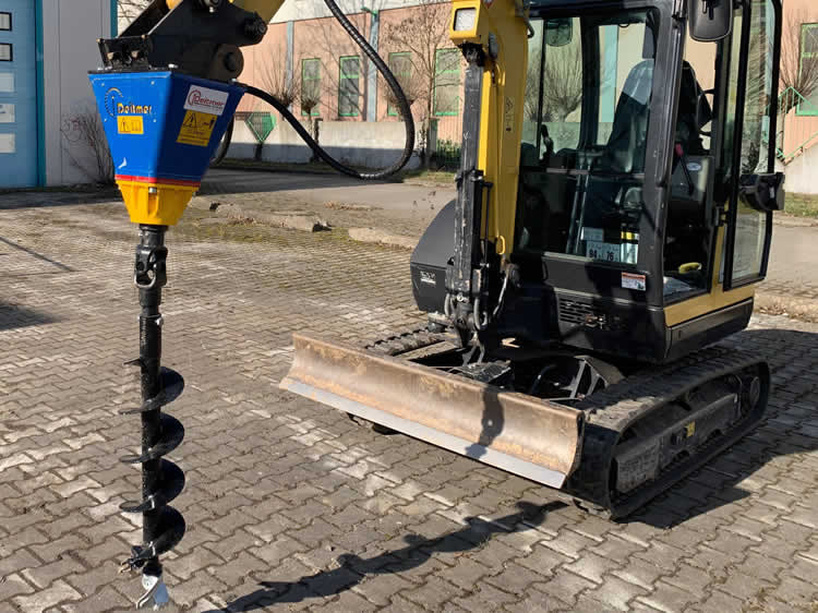 | Zum Bohrgerät gibt es wahlweise Erdbohrer mit 150 oder 250 mm Durchmesser |